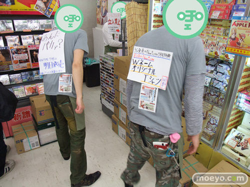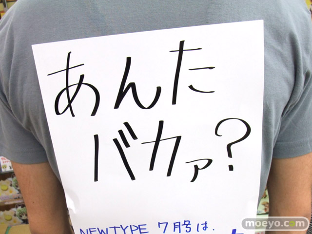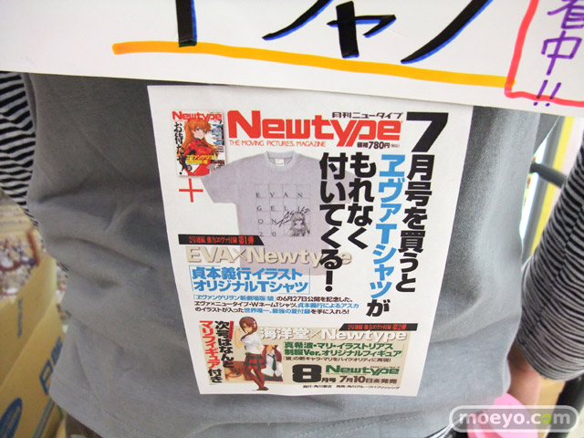 6月10日発売の、雑誌「Newtype 7月号」には、「貞本義行イラストオリジナルTシャツ」が付属するようで、ゲーマーズ本店では9日に、店員さんが付録のTシャツを試着しながらお仕事してました。背中には「あんたバカァ?」とかの張り紙も!