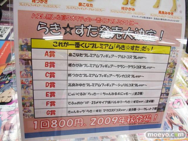 ■ 商品名:「一番くじプレミアム らき☆すた~マクロスF こらぼれ~しょんずヤック・デカルチャー!~」 ■ 発売元:バンプレスト ■ 仕様:空くじ無しのくじ引き ■ 価格:1回800円 ■ 発売:2009年秋 |