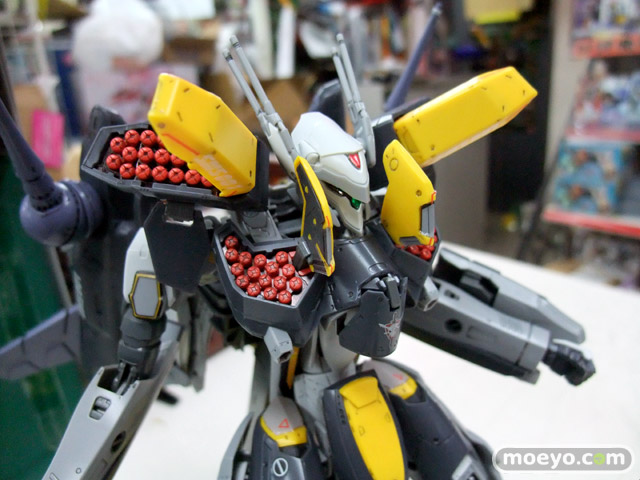 バンダイ「マクロスF 1/72 VF-25S アーマードメサイア バルキリー オズマ機」のサンプルが、キャラシティで展示されていました!商品説明によると『全身8ヶ所のミサイルハッチが展開。握り手も付属し劇中のシーンを再現可能』というものです!