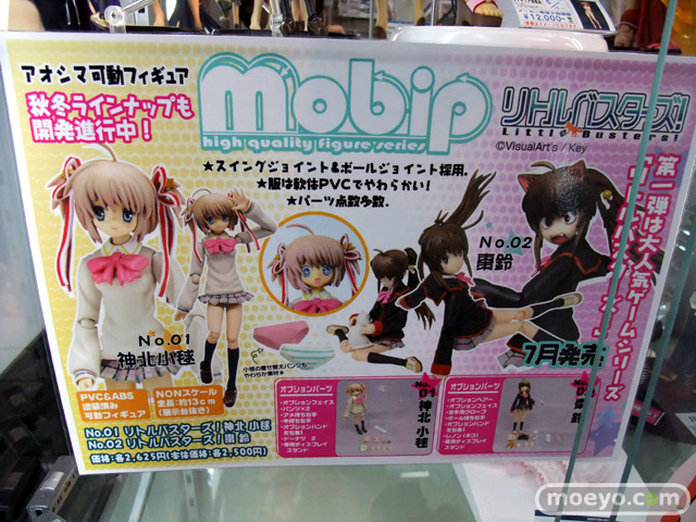 アオシマの可動フィギュア新シリーズ mobip(モビップ)の第1弾「リトルバスターズ! 神北小毬/棗鈴」2種のサンプル展示がアキバで開始!商品説明によると『可動ジョイントには、スイングジョイントとボールジョイントを採用』など。