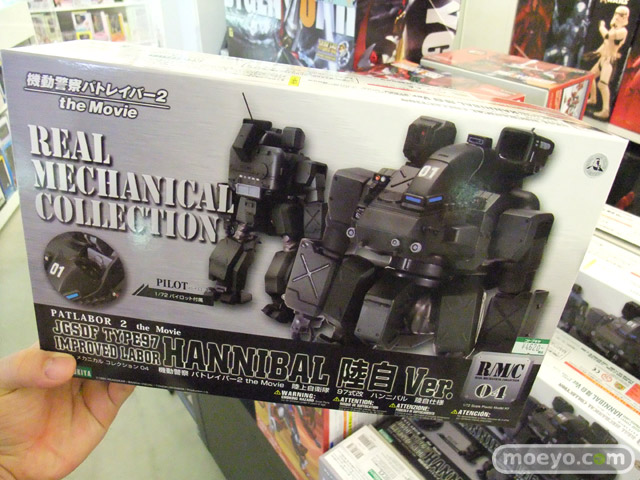 機動警察パトレイバーTHEMOVIE2より、「ハンニバル(陸自仕様)」が登場。2008年11月発売の「PKO仕様」から、武装が変更されガトリングガンが新たに追加されました。可動部のラバーは、組み立て易さや塗装を考慮して、通常のロボットキット同様にプラパーツを採用。可動部のクリアランス(隙間)を考慮し、隙間の無い固定バージョンも付属します。また本体は陸上自衛隊標準のダークグリーンにて成型、「陸上自衛隊」のロゴや機体番号が水転写デカールにて同梱されます。