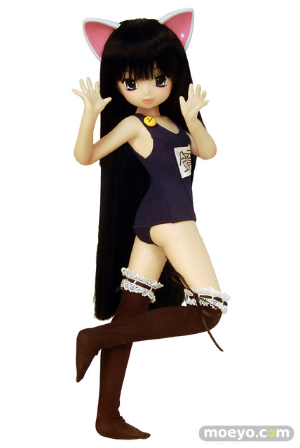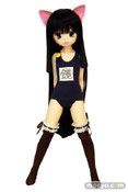 「SFD 鏡黒」はさらりとストレートにのびた黒髪ウィッグと大きなネコ耳、そしてスクール水着とゴスロリ風オーバーニーソックスが付属します。もちろん市販されているお好みの1/3サイズのドール衣装やウィッグに付け換える事もできます。