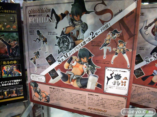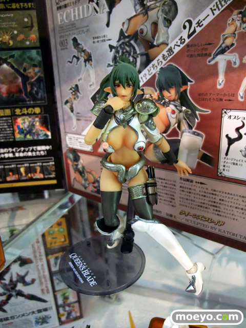 海洋堂「リボルテック クイーンズブレイド No.003 歴戦の傭兵 エキドナ」のサンプル展示が、アキバのいくつかの店舗で開始してます。とらのあな本店では、乳隠しの片方をダメージ版にして展示していますが、どう見ても乳首ポロリ!