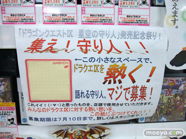 7月11日に発売が迫ったNDS「ドラゴンクエストIX 星空の守り人」ですが、いつも多数の手書きPOPを展開するゲームシティで、「ドラクエIXを熱く!語れる守り人、マジで募集!」として、手書きPOPの文章を募集していました!