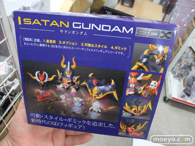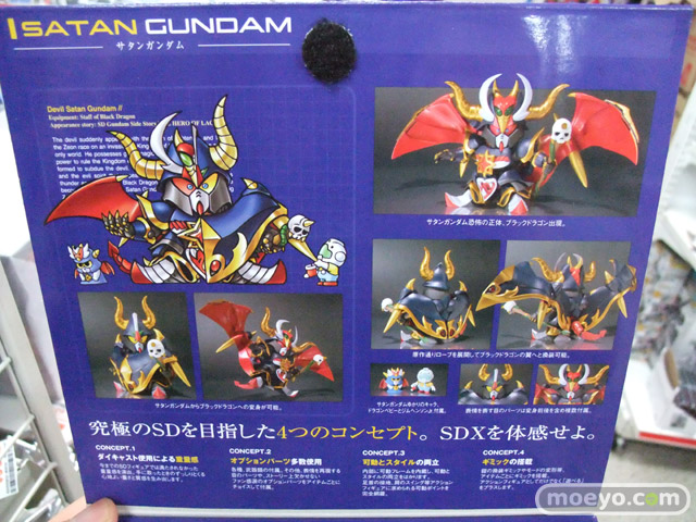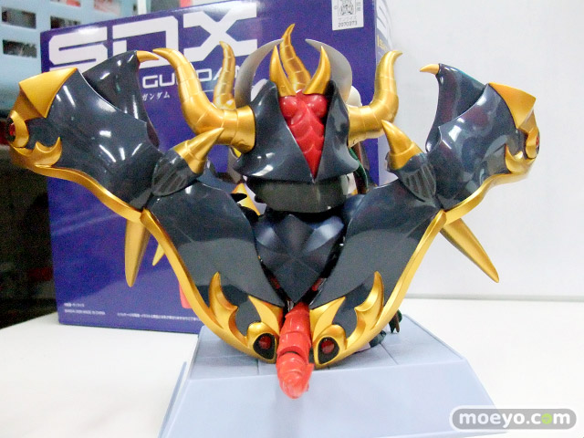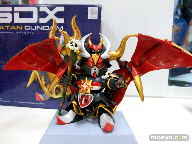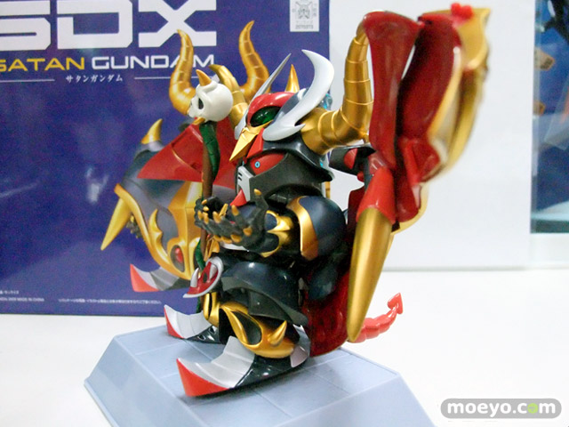 バンダイ「SDX サタンガンダム」のサンプル展示が、キャラシティにて開始!商品説明によると『マントを開き頭部のパーツの交換によりブラックドラゴンへの換装を再現』というもので、ドラゴンベビーとジムヘンソンJr.のミニフィギュア付!