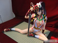 02 たすきがけにした組み紐や、帯留め、ふんどしといった部分には本物の組み紐や綿布を使用しており、日本の伝統文化をミニチュア再現したものになっています。実物ならではの質感に注目してみてください。
