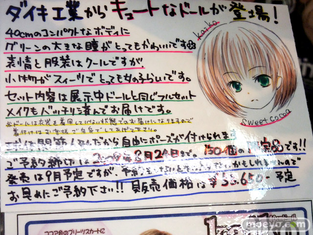 以前サンプルレビューをお伝えした、ダイキ工業の150体限定「40cmオリジナルドール kaiko Sweet Cocoa」のサンプル展示が、ジーストア・アキバ店で開始!アキバ行く機会のある方で気になっていた方は、実物をチェックできるチャンス!