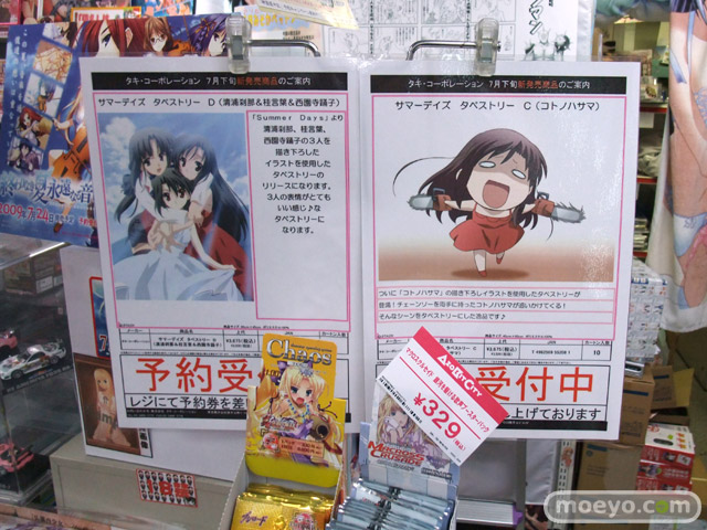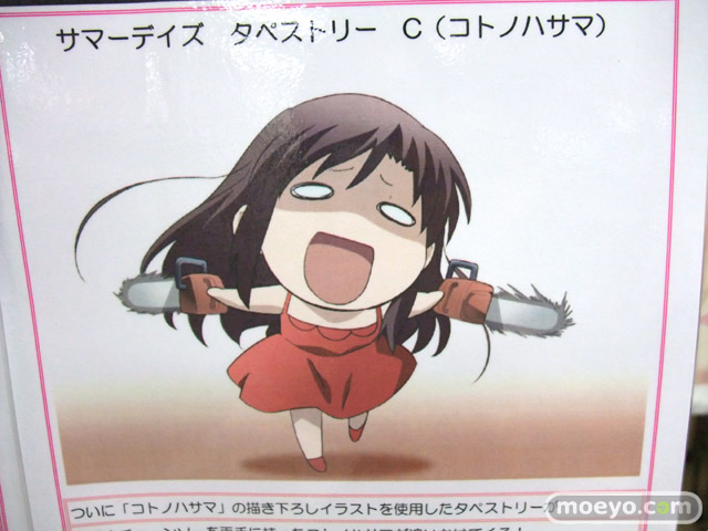 キャラシティにて、タキの「サマーデイズ タペストリー」の「コトノハサマ」の予約受付が開始していて、サンプル画像が掲示されています。イラストは「チェーンソーを両手に持ったコトノハサマが追いかけてくる!」というもので、インパクト抜群!