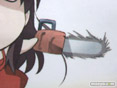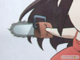 ついに「コトノハサマ」の描き下ろしイラストを使用したタペストリーが登場!チェーンソーを両手に持ったコトノハサマが追いかけてくる!
