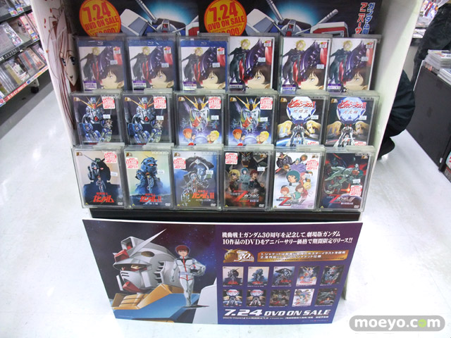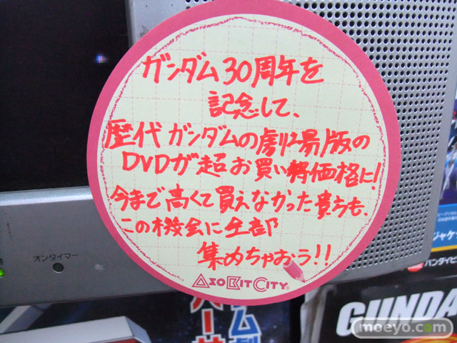 7月23日、ゲームシティのPOPで『ガンダム30周年を記念して、歴代ガンダムの劇場版のDVDが超お買い得価格に!』という、ガンダム30thアニバーサリーコレクションが発売!全10種で、定価は全て税込み3,000円です!