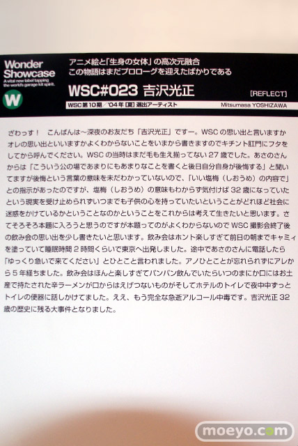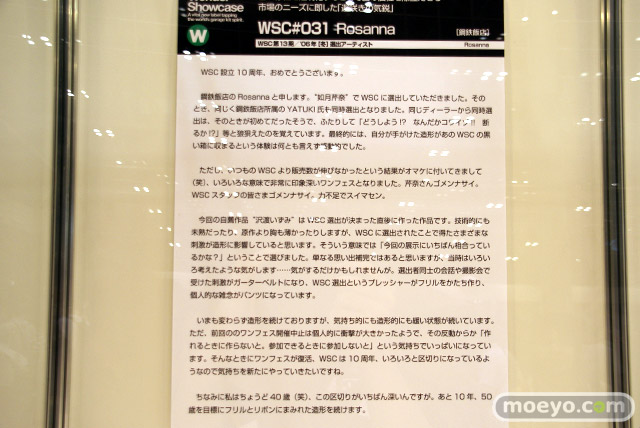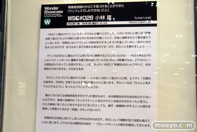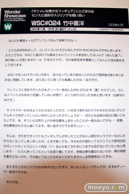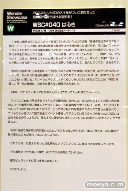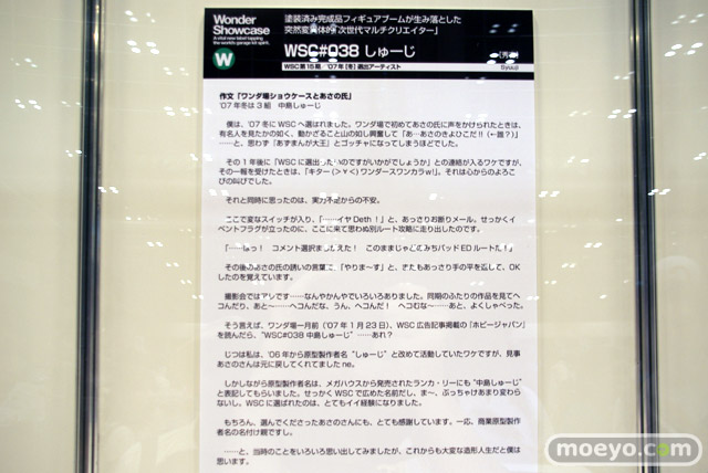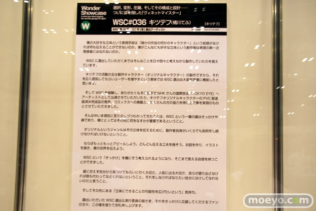 ワンダーショウケース(WSC)発足から10年目の今年、会場で歴代選出アーティスト作品を一同展示!こちらでは023~045までの展示の様子を!画像はWSC#044選出の横嶋真平氏(08年夏選出)ブースで展示されていた「彼女さん」。