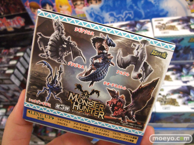 ■ 商品名:「超造形魂 モンスターハンター 第3弾」(RA) ■ 発売元:バンダイ ■ 仕様:トレーディングフィギュア ■ サイズ:各全高約70mm ■ ラインナップ:ラギアクルス(「モンスターハンター3(トライ)」、グラビモス、グラビモス亜種、フルフル、フルフル亜種、ショウグンギザミ、ショウグンギザミ亜種、テオ・テスカトル、ナナ・テスカトリ 全9種類 ■ 価格:1BOX9個入り 税込6,142円/1パッケ税込683円 ■ 関連記事:第2弾発売記事 |