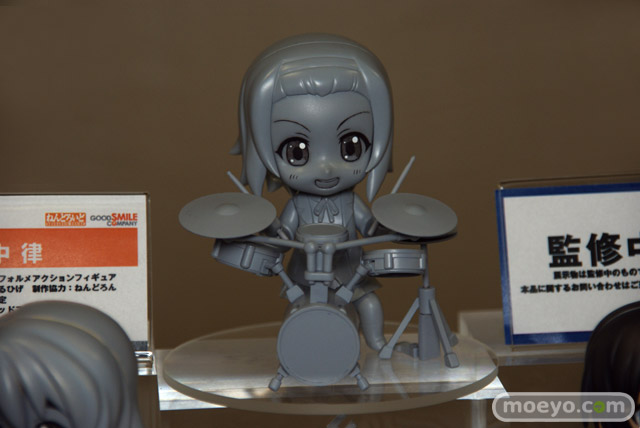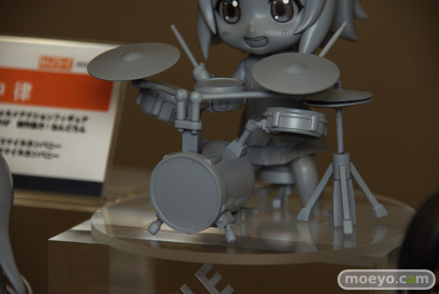「’09夏ホビーメーカー合同流通向け展示会」での、グッドスマイルカンパニー「ねんどろいど けいおん! 田井中律」の無彩色サンプルの展示の様子をお伝えします!特徴的なおでこや、快活な表情はまさに律!ドラムセットも中々の出来!