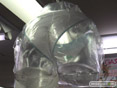 コミケのうどんやさんにあったサンプル同様、透明なエアマネキンにはかせた状態で展示!