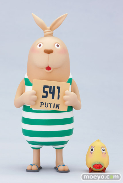 ロシアの監獄を舞台に、なぜかお気楽な収監ライフをおくるウサギを主人公にした『ウサビッチ』。2006年秋にシーズン1が放映されるやいなや、その独特のノリや空気感にハマったファンが続出!現在もMTVにてシーズン3が絶賛放映中の『ウサビッチ』から、陽気で優しいがちょっと間抜けな主人公「プーチン」をソフビフィギュアで商品化です。一度見たら忘れられない強烈キャラ、オカマヒヨコの「コマネチ」も付属、ゆるーくお気楽な収監ライフをおくるプーチンを存分にお楽しみください。