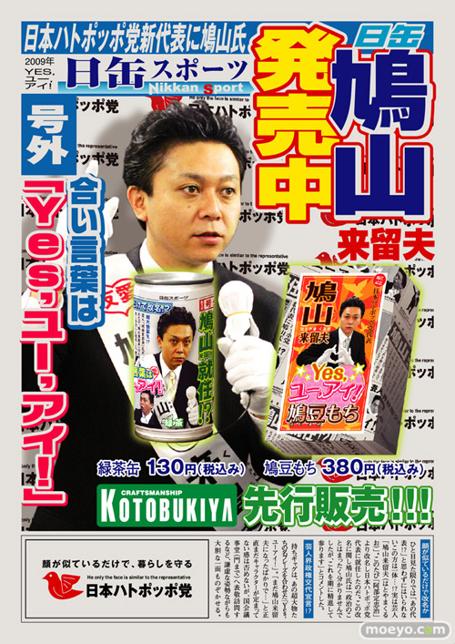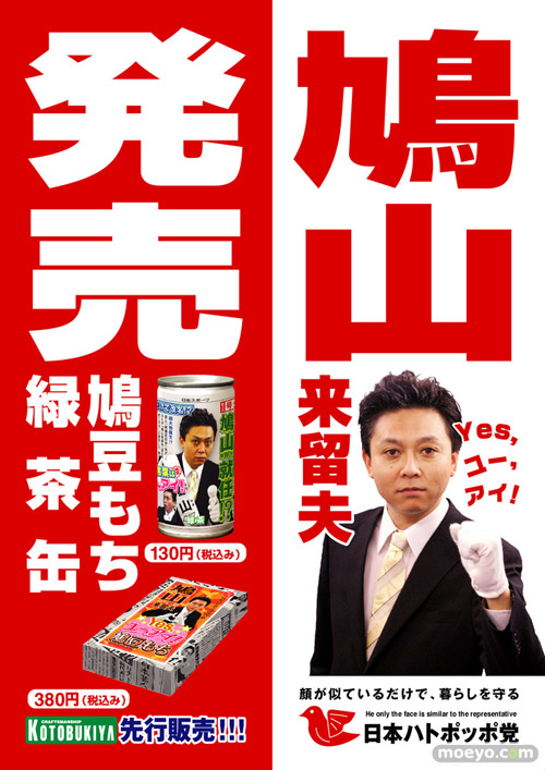 2009年8月31日、コトブキヤラジオ会館店頭にて「来留夫 鳩豆もち」などの先行販売が行なわれる。同イベントには「顔が似ているだけで、暮らしを守る」のキャッチコピーの下に(?)ポッポ党代表「来留夫」氏も応援にかけつけるそうだ。