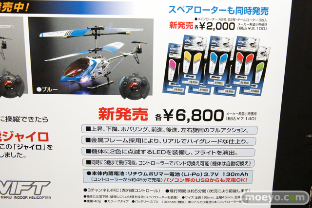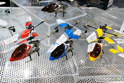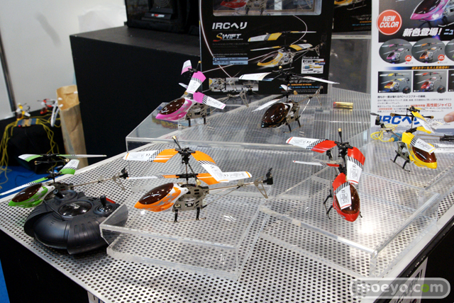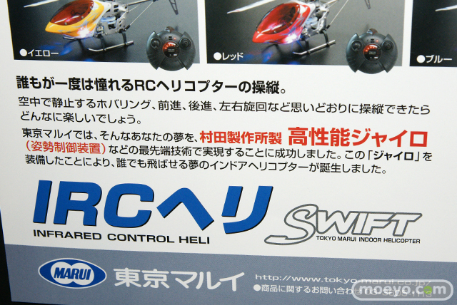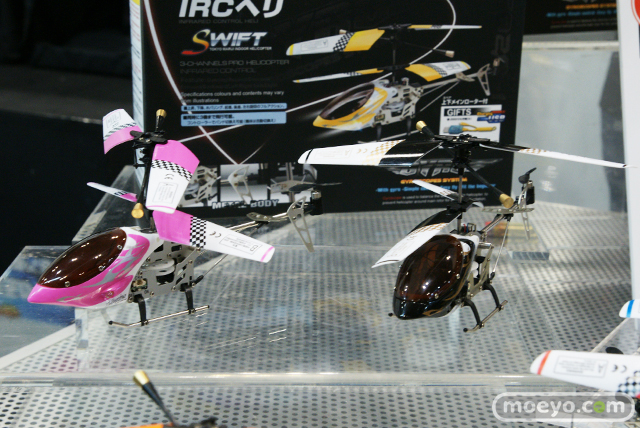 「キャラホビ2009」の東京マルイブースの「IRCヘリ」。これは村田製作所製の高性能ジャイロ搭載で安定した飛行が楽しめるRCヘリコプター。簡単操作なのに低価格&新登場のカラーがとてもかわいいらしく、女性にもおすすめの一品です!