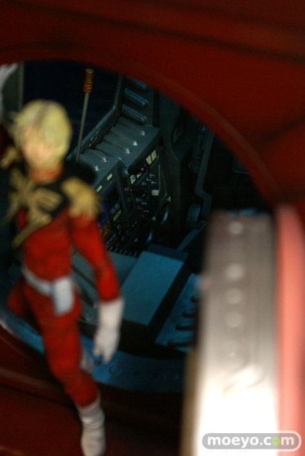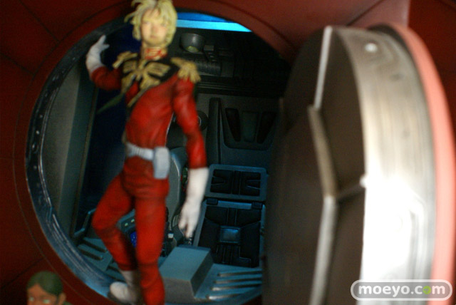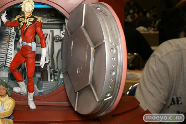「キャラホビ2009」の個人ディーラーブースでは、「皇帝ブランド」ブースにて丸屋さん制作の「機動戦士ガンダム ゲルググ~torso~」が展示されていました。全高約850mmのゲルググはコックピット内も精巧に再現!画像は搭乗口に佇むシャア。