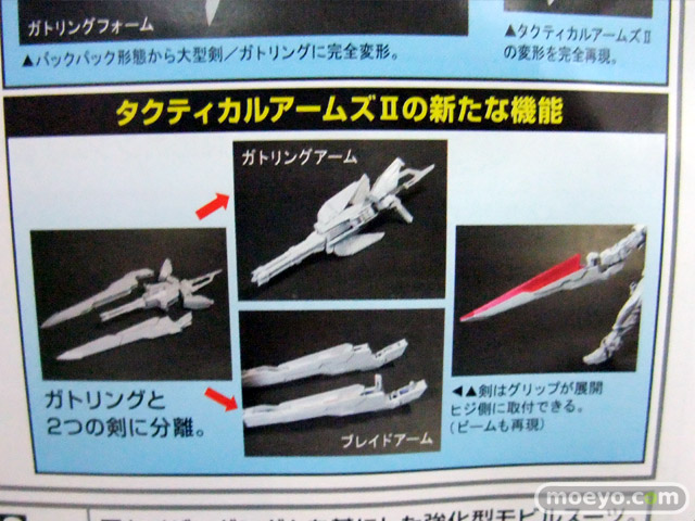 【付属品】GNソードII×1・GNソードIII×1・GNビームサーベル×1・GNシールド×1 GNミサイルA/S×1・粒子撹乱ミサイル×1・GNコンデンサー×1・ハンドミサイルユニット×1 ホイルシール×1・デトロンシール×1・ガンダムデカール×1・フォログラムシート×1・GNドライブ×2(組立て済み)・ LED×1(頭部用)・サンプル電池(LR41×2)