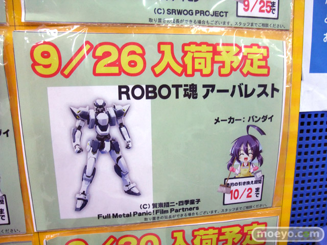 ソフマップアミューズメント館4Fの、ホビー新作入荷情報に9月入荷予定が追加!それによると、メガハウス「クイーンズブレイド From Animation 戦闘教官アレイン」は30日頃入荷するみたいです。他、掲示されていた予定をまとめました!