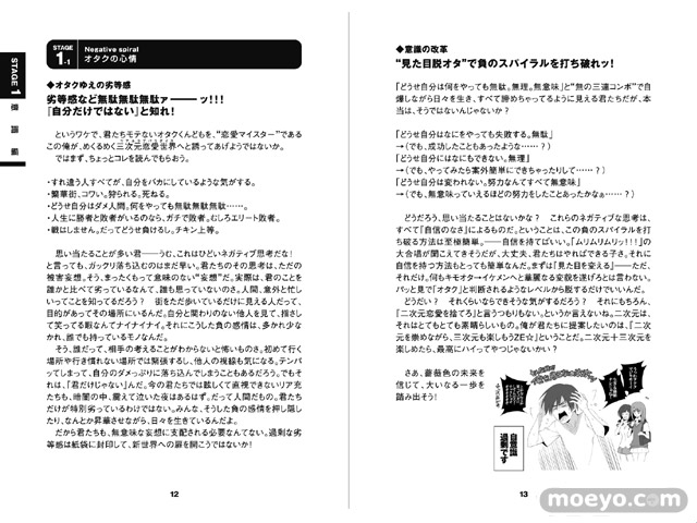 二次元の女の子に恋ばかりしている男の子も、やっぱり本当は三次元の女の子と恋愛がしてみたい・・・本書はそんなリアル恋愛に疎いオタク男性に向けた恋愛ガイドとなります。ステップごとにわけ、順序を追って出会いから付き合い方まで解説していきます。等身大のオタクたちがその解説を見て「本当にキモオタである自分たちに実現可能なのか?」をじっくりと考えていく、思わず納得・共感してしまう漫画も掲載。恋愛のガイドとして、オタクたちの生き様を是非ご覧下さい!