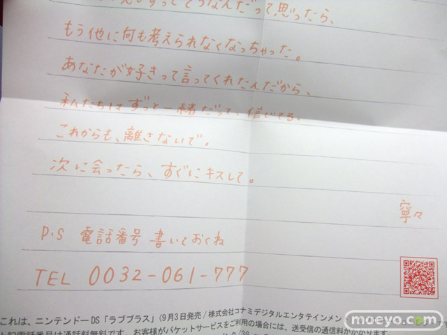 紹介されている、「ラブプラス」のコスプレさんのラブレター(プロモーションレター)を受け取りました!
