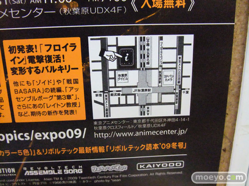 2009年10月31日に「リボルテックエキスポ’09」が開催するようで、その告知チラシが海洋堂ホビーロビーに置かれてました。チラシには、まだ公式等で未発表の「エヴァ劇場版のマリ」「クイブレのアレイン」等のサンプルの顔部分が掲載!