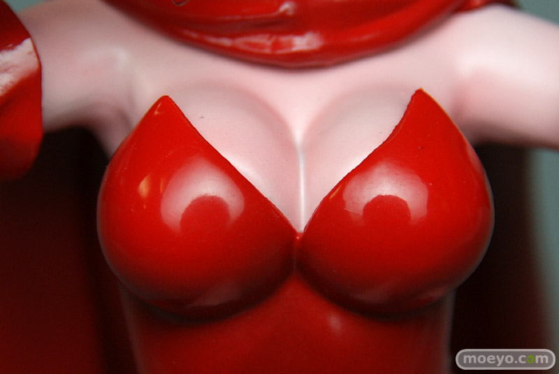 名前の「緋色の魔女」通りの鮮烈な印象を残すコスチュームの赤に加え魔法使いらしく宙に浮かび上がる姿、艶っぽい表情と仕草をイラストから見事に切り取った松本江永氏の造形にご注目下さい。