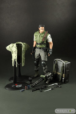 本アイテムは、カプコンの全面的バックアップを受け、バイオファンに大人気のS.T.A.R.S.版を全高約30センチ、21箇所以上可動するフィギュアで立体化。S.T.A.R.S.版コスチュームは細部まで精巧に再現された。上半身はラバーボディーを採用し、筋肉質な肉体がリアルでクリスの細かな息遣いや筋肉の躍動感を感じることができるはずだ。また、バイオといえば武器に注目。今回の目玉は、クリア後に入手可能となる6銃身もある重機関銃ガトリングガン。ゲーム中では巨漢の武装兵マジニが装備して登場。大勢のガトリングマジニに襲われて痛い目に遭ったゲームユーザーも少なくないだろう。 そんな印象深い武器のほか、初期装備であるハンドガン、マグナムやマシンガン等の武器が付属する。