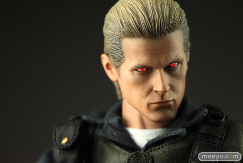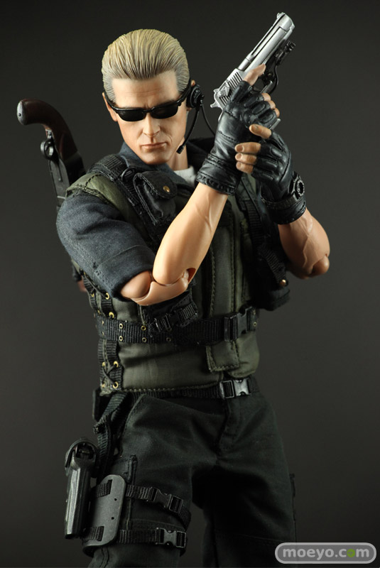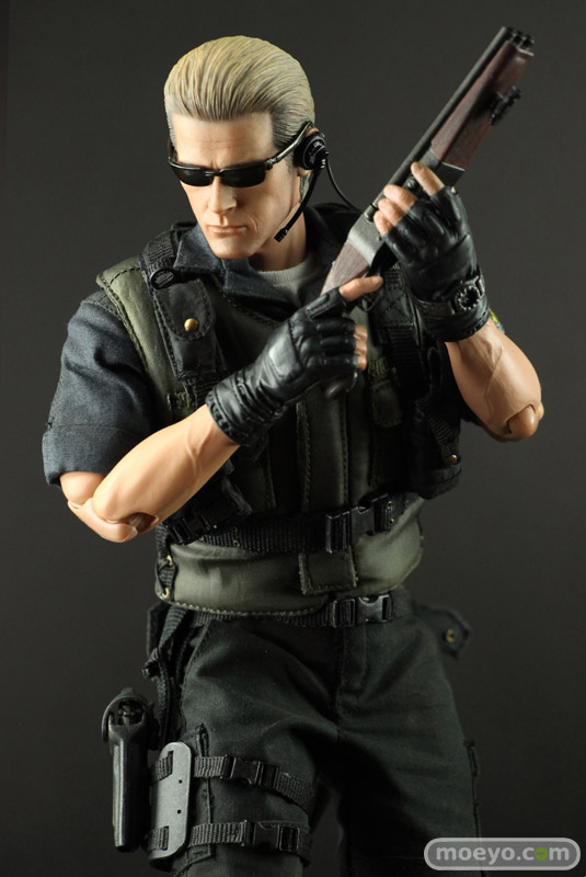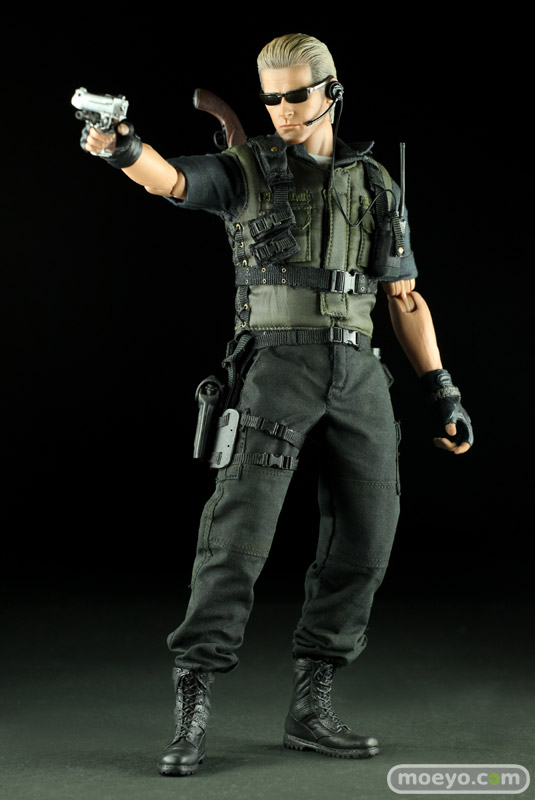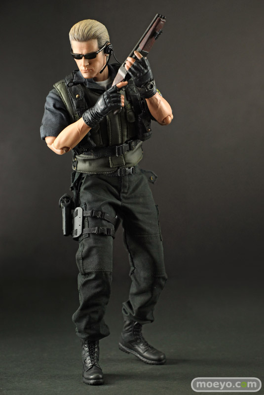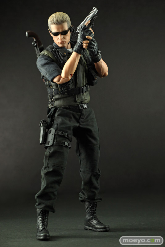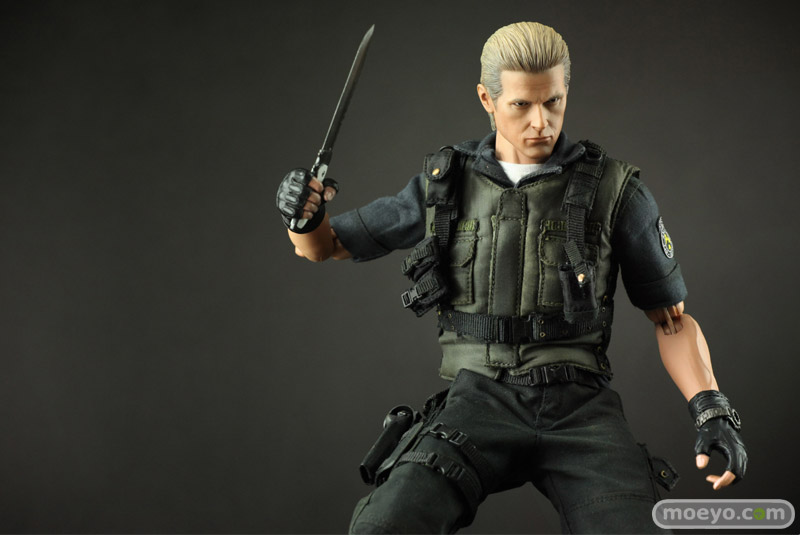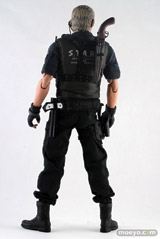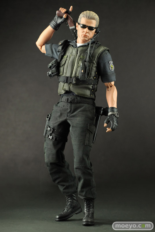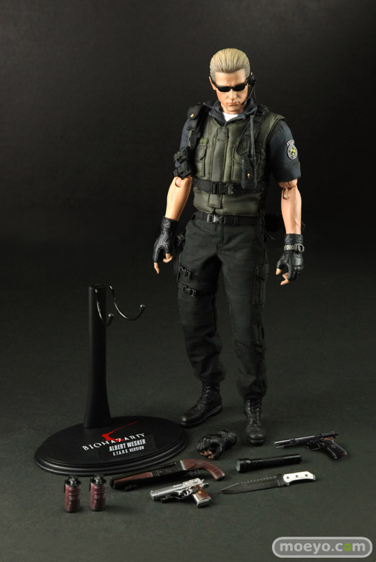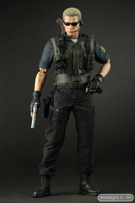 本アイテムは、カプコンの全面的バックアップを受け、バイオファンに大人気のS.T.A.R.S.版を全高約30センチ、36箇所以上可動するフィギュアで立体化。 S.T.A.R.S.コスチュームは細部に至るまで丁寧に作り込まれ、金髪のオールバックを忠実に再現したその姿は、隊長としての威厳と冷徹さを感じることができるはずだ。 また、トレードマークの漆黒のサングラスの下には、なんと、黒目が赤く光るライトアップ機能を搭載。 黒目が赤く光ったその風貌は邪悪さが満ち溢れている。 武器はバイオファンお馴染みのサムライエッジやショットガン、マグナムが付属する。