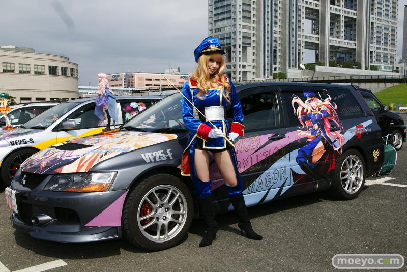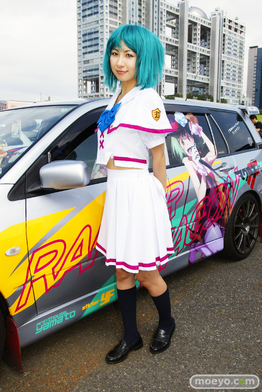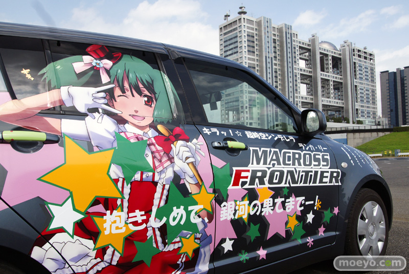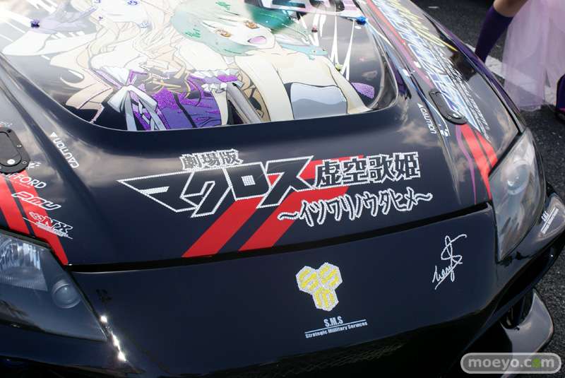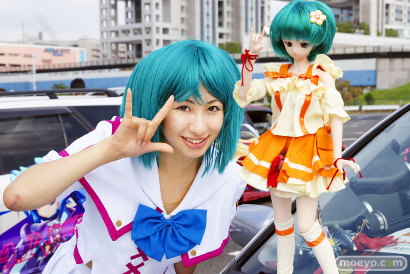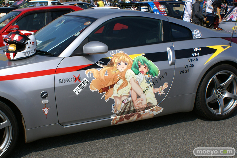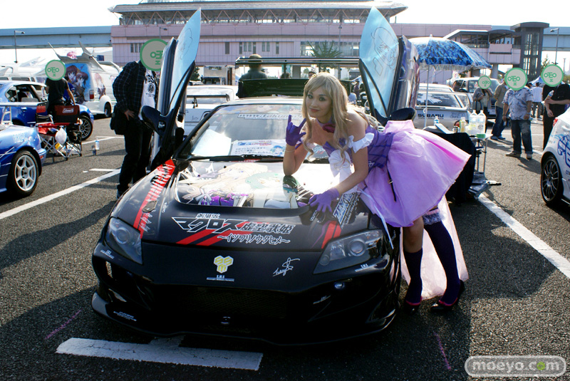 「第2回 痛Gふぇすたinお台場」にエントリーした痛車から「マクロスF」をピックアップ! 痛車のオプションとして、もはや抱き枕やフィギュアやドールは定番ですが、今日はコスプレイヤーさんも搭載で 気分はさながら”痛モーターショー”だっ!!