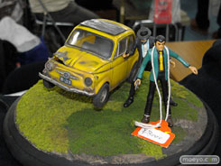 上のジオラマはオリジナル作品で、ルパンやスピーダーバイク・スカウトトルーパーは市販のキットを塗装したものだそうです。