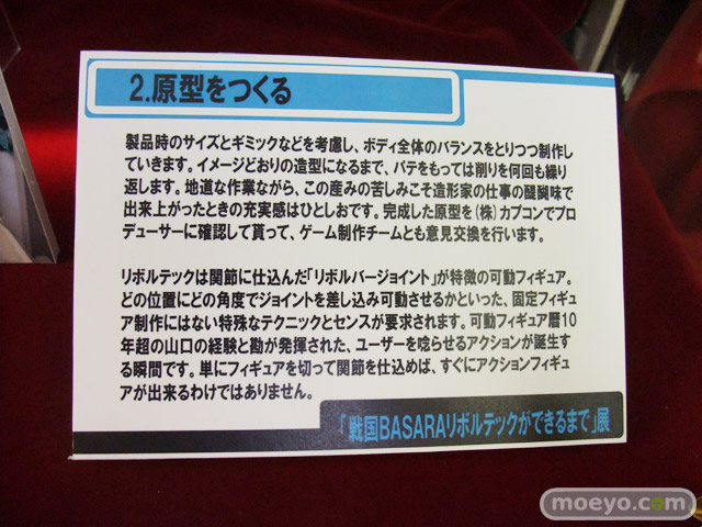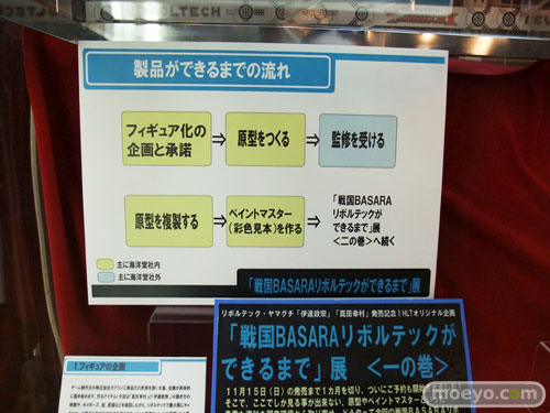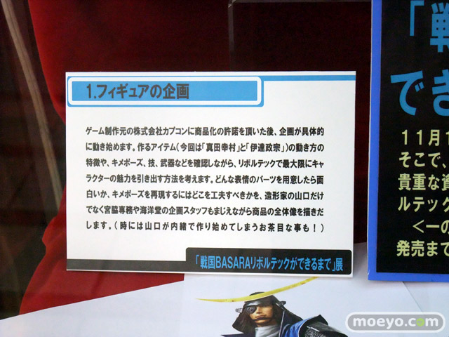 海洋堂ホビーロビーにて、以前告知のあった「戦国BASARAリボルテックが出来るまで展」が開催されています!現在展示されているのは『フィギュア化企画と承諾』~『ペイントマスターを作る』までの「一の巻」。山口氏製作の「原型」も展示!