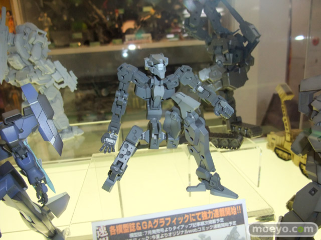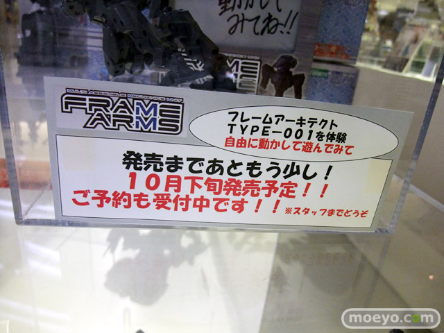 KOTOBUKIYAにて、10月末発売予定のコトブキヤ新シリーズ「フレームアームズ」の「フレームアーキテクト TYPE001」他2種のパッケサンプルを見せて頂きました!試遊サンプルも設置!フレームアーキテクトは、なんとなんと片手逆立ちも!