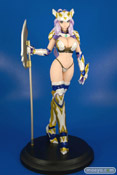 湊川あまは(kip)が独自の世界観で生み出す女性を、あまは氏自ら立体化する、「あまはコレクション」。そのシリーズ4作目は「風の女神」をイメージしながらもその表情は対照的に、右手に大型武器を持ち体には硬質感のあるゴールドとシルバーの「鎧」を纏った闘う女神の姿を造形しました。前作までと同様に付属の胸部パーツを差し換えれば大人の魅力溢れる女神の姿をお楽しみいただけます。