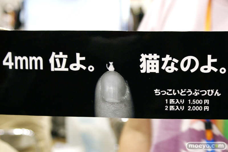 ■ 商品名:「ちっこいどうぶつびん」 ■ サイズ:[動物]全長約4mm [瓶]:小/全長22mm 大/全長35mm ■ 価格:1匹入り1,500円/2匹入り2,000円 ■ 発売:2009年10月12日(トレフェスin有明2) |