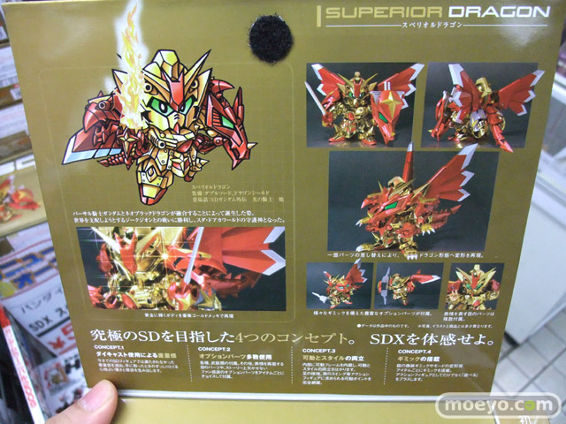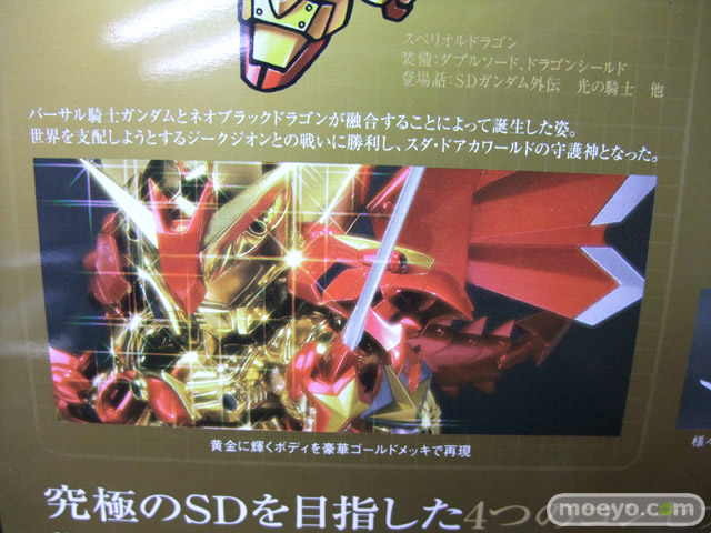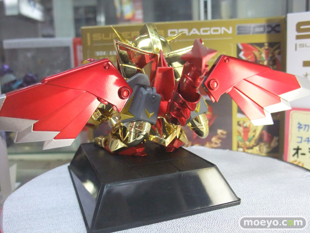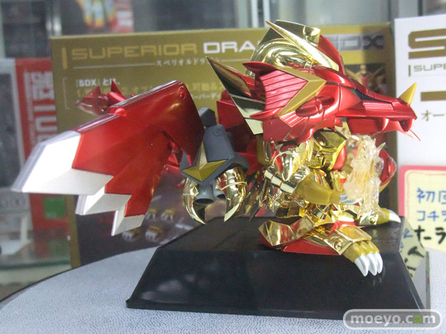 スペリオルドラゴン降臨!!神々しく光り輝くボディには、ゴールドメッキを採用!一部パーツの差し替えにより、ドラゴンモードへの変形が可能。大型ウィングは展開式で盾やランスは組み換えで別パーツの武器になるなど、ギミック満載の武装類が付属。