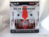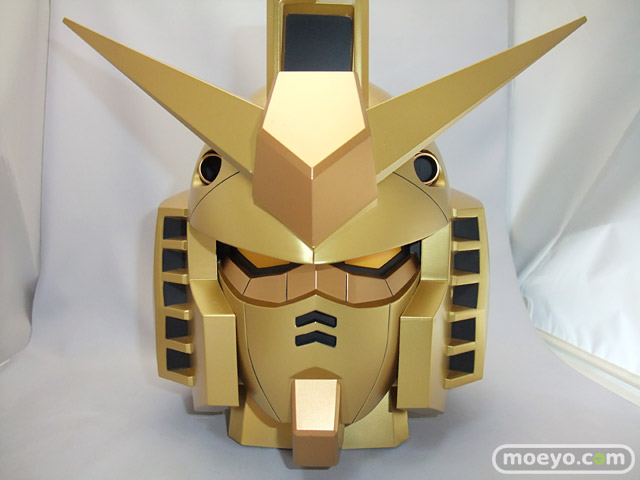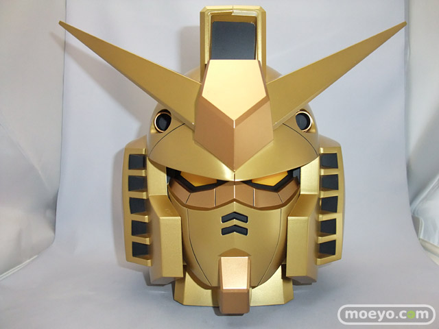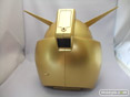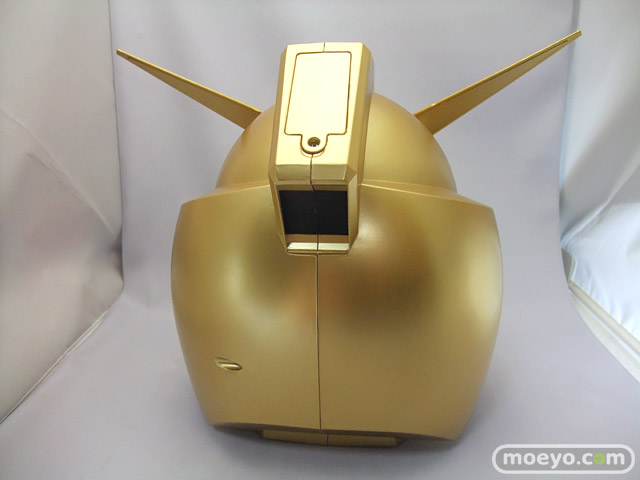 ガンダムヘッドバンク賞のゴールドVer.です。「ガンダム」の顔を迫力のサイズで忠実に再現したディスプレイ貯金箱です。コインを入れると、「ガンダム」が起動する際の効果音とモノアイ(目)部分が光る演出を楽しむことができます。