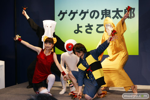 「ジャパン・アニメコラボ・マーケット2009」のステージイベントで行なわれた「アニメよさこい」。メイドさんや、ヤッターマン、ゲゲゲの鬼太郎が 鳴子を鳴らして踊る姿には、高知県の懐の広さすら感じます。(動画アリ)