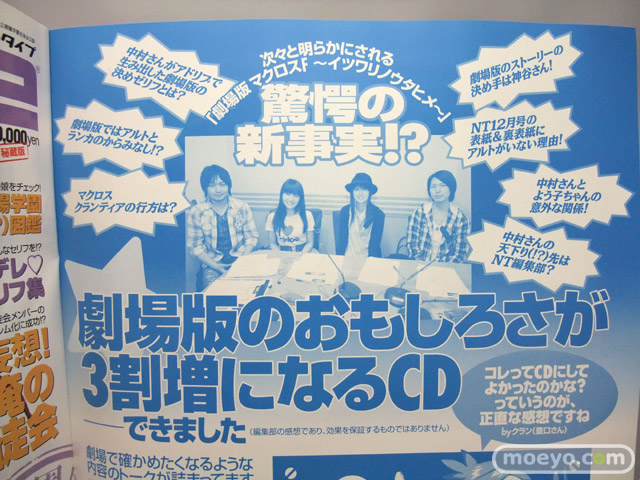 11月10日、雑誌「ニュータイプ」「アニメディア」「アニメージュ」のアニメ3誌と、「コンプティーク」の2009年 12月号が発売!今回は、3誌とも2009年11月21日に劇場公開される「劇場版 マクロスF~イツワリノウタヒメ~」が表紙でした!
