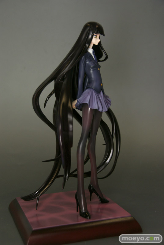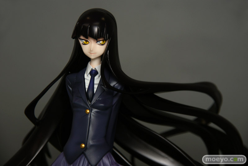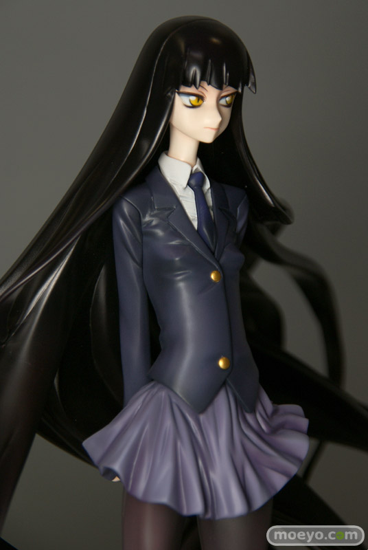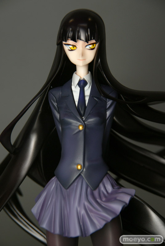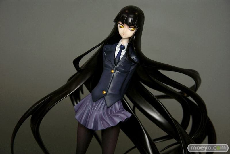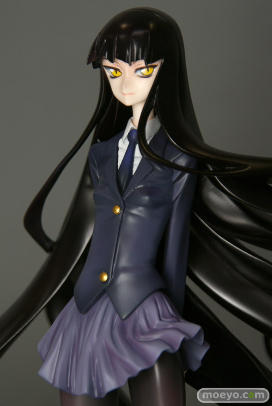 モデルのようなスラリとした脚線美に黒タイツ。妖しくも美しく流れる黒髪。さらに黄色く艶めく瞳。もちろん、制服のしわ、ボタンやネクタイ、動きのついたスカート等、細部にもこだわりぬかれた完成度。