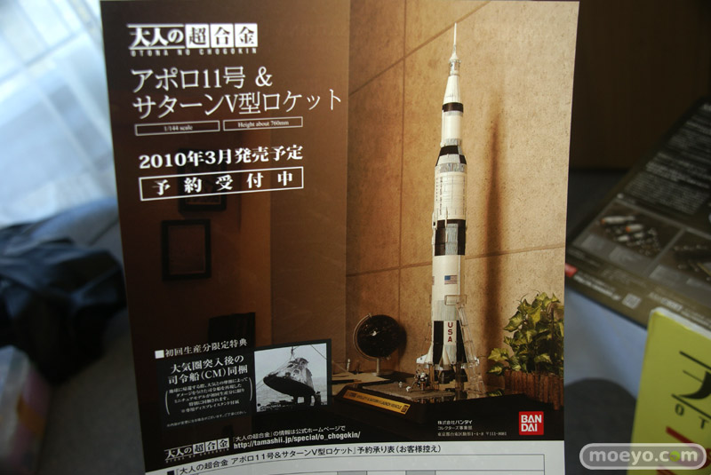 「宮沢模型展示会2009秋」のバンダイ系ブースで展示されていた「FW GUNDAM STANDart:6」や「ヱヴァ新劇場版 PORTRAITS 3」「狩人装備 KABUTO(仮称)」「大人の超合金 アポロ11号&サターンV型ロケット」等の新作展示の様子を!