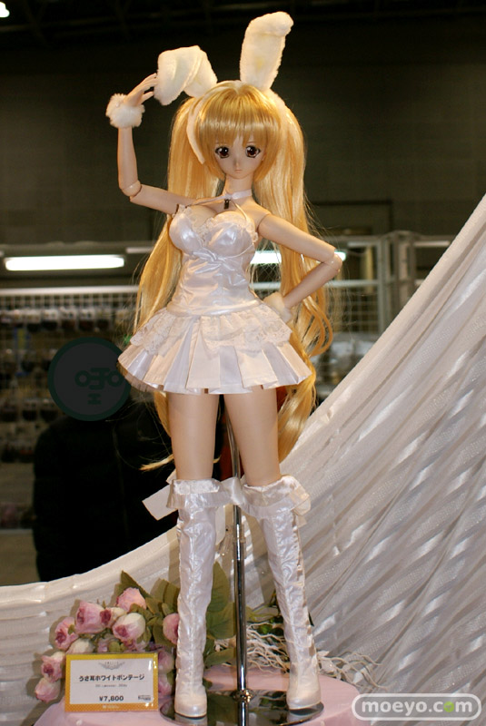 ■ 商品名:「ウサ耳ボンテージ ホワイト/ピンク」 ■ 各対応サイズ:DD(L胸のみ対応)、DDdy ■ 各セット内容:ウサ耳カチューシャ、ボンテージ、ファーカフス×2、スカート、パニエ、ニーハイブーツ ■ 価格:各税込8,190円 ■ 発売:2009年12月6日(ドールズ・パーティー22) |