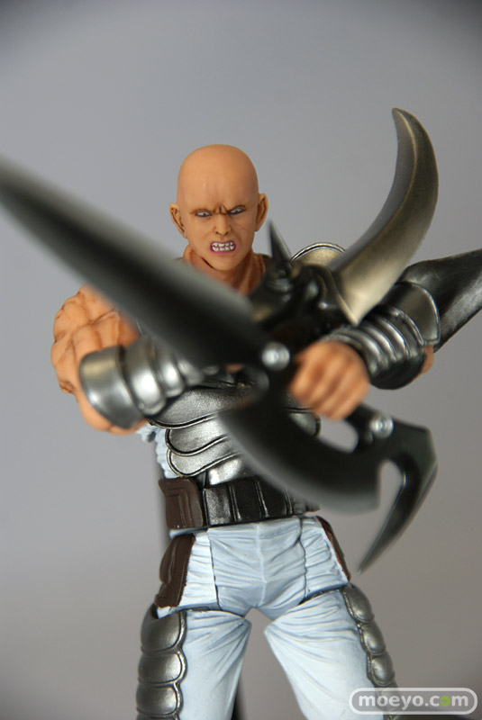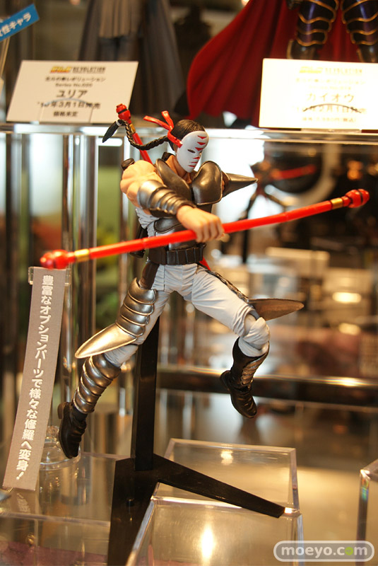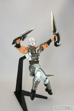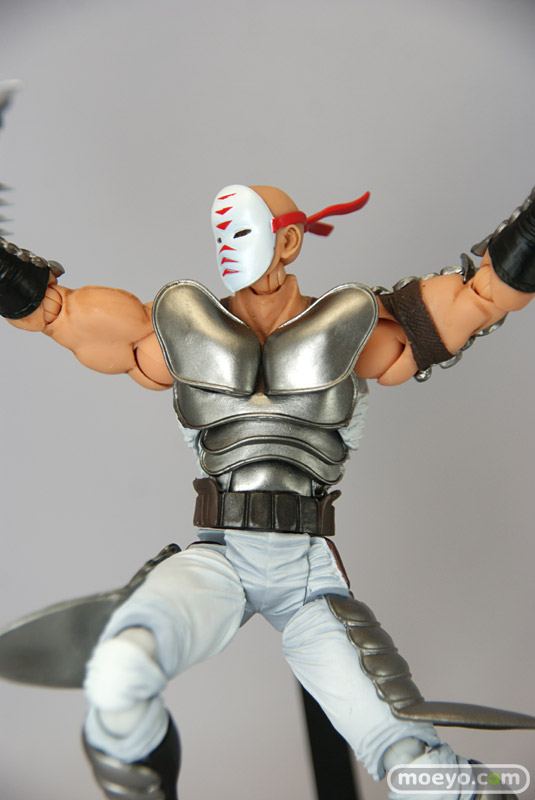 海洋堂「リボルテック 北斗の拳REVOLUTION 名も無き修羅」のサンプルを見せて頂きました!商品説明によると『ファルコに瀕死に追いやった、修羅の国の門番』というもので、仮面、スキンヘッド等付属し、様々な「名も無き修羅」を再現可能!