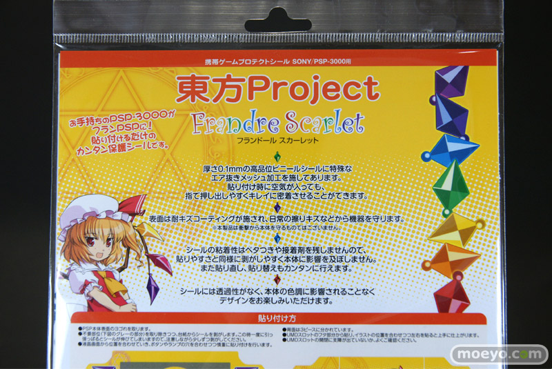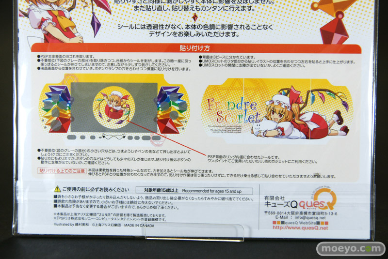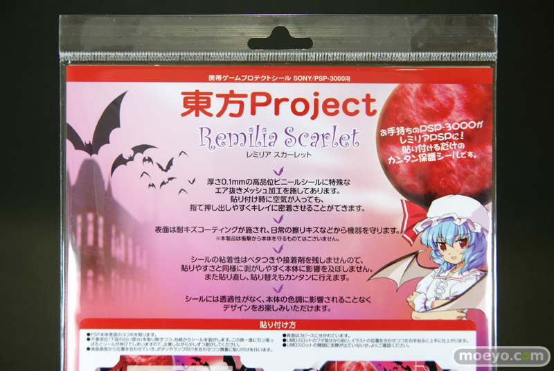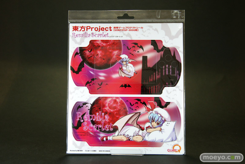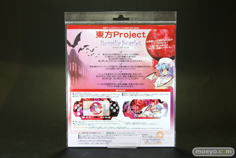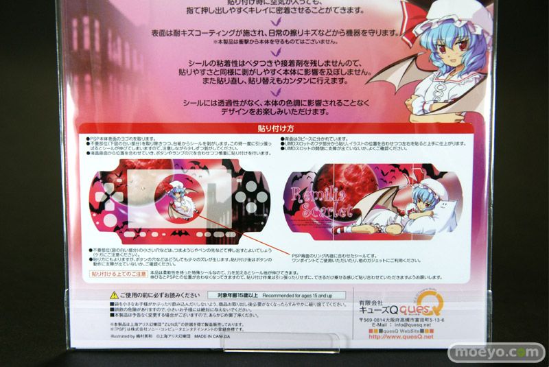 現在発売中のキューズQ「東方プロジェクト 携帯ゲームプロテクトシール(PSP-3000用) レミリア/フランドール」2種のサンプルと、レミリア使用例を見せて頂きました!シールには透過性がなく、本体の色調に影響されずに楽しめるみたいです!