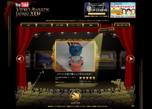 2009年にYouTube上で公開された人気動画の中から、「アニメーション」、「ブログ・ハウツー」、「ペット・動物」、「音楽」、「実写・特撮」、「乗り物・テクノロジー」、「風景・夜景・自然」の 7 部門で最も人気のある動画を、ユーザーからの投票で選出する企画