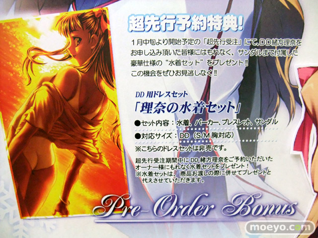 1月中旬より開始予定の「超先行受注」にてDD緒方理奈をお申し込み頂いた皆様にはもれなく、サンダルまで付属した豪華仕様の”水着セット”をプレゼント!!この機会をぜひお見逃しなく!!