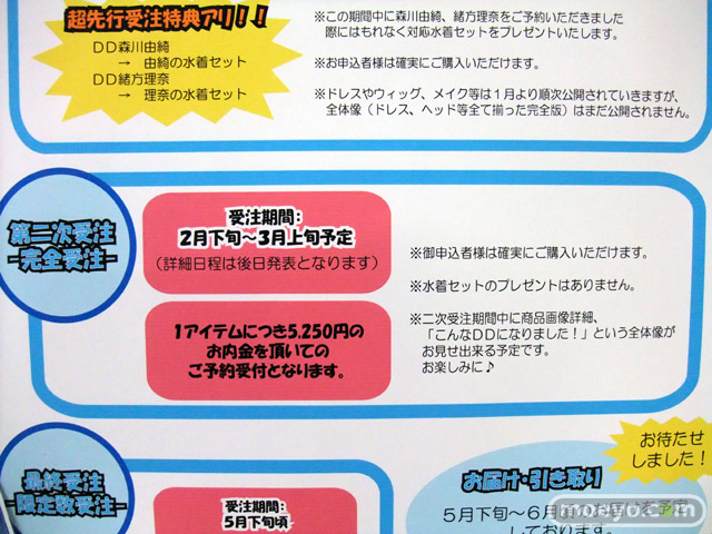 1月中旬より開始予定の「超先行受注」にてDD森川由綺をお申し込み頂いた皆様にはもれなく、サンダルまで付属した豪華仕様の”水着セット”をプレゼント!!この機会をぜひお見逃しなく!!