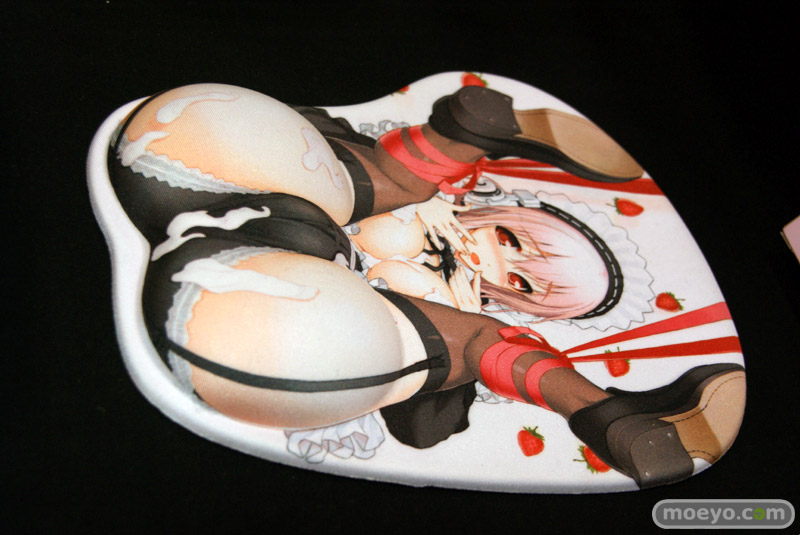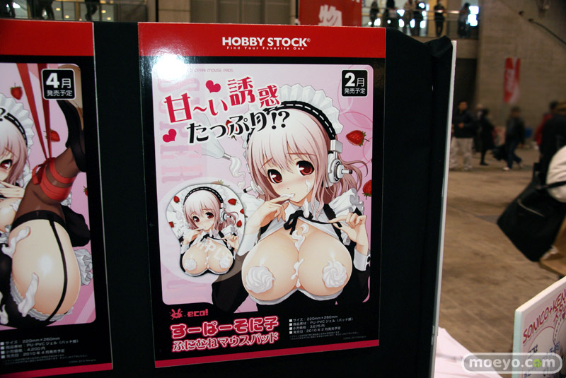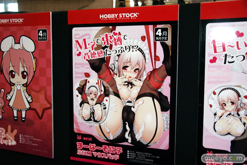 同人で人気?の、いわゆる股間の「土手」も再現した立体マウスパッドですが、商業でも商品化されるようで、そのサンプルがホビーストックブースに展示!しかも絵柄が「すーぱーそに子」なので、そのエロさはもう・・・!