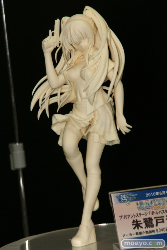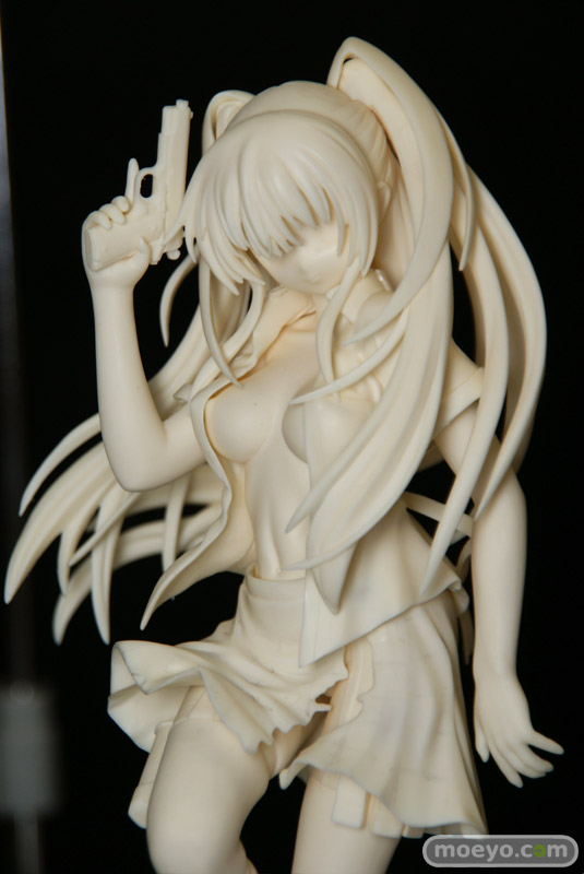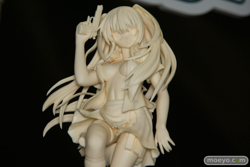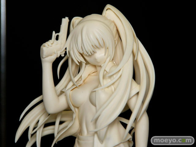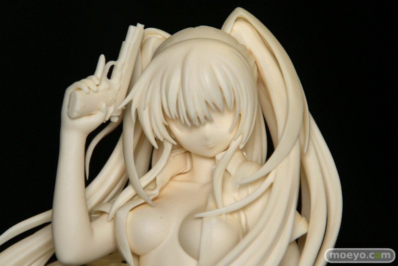 「メガホビEXPO 冬祭2010」の会場で、メガハウス「ブリリアントステージ リトルバスターズ!エクスタシー 朱鷺戸沙耶」の無彩色サンプルが初公開!銃を片手に、胸元が開けたセクシーな格好で立体化!よーく見ると乳首造形があるような・・・?